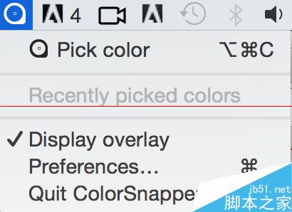 2、从Launchpad中打开ColorSnapper,在Finder中找到一个类似取色盘的图标,点击出现下拉菜单