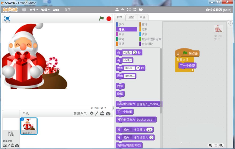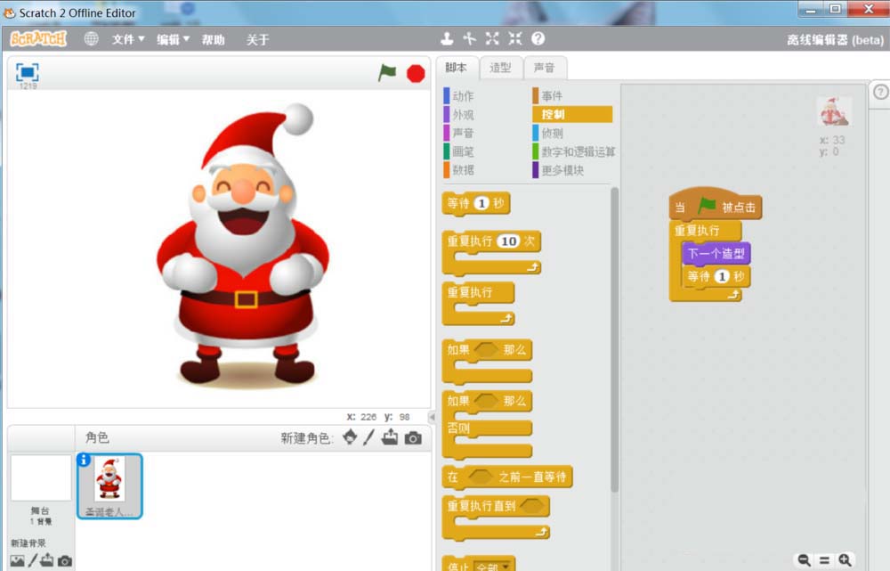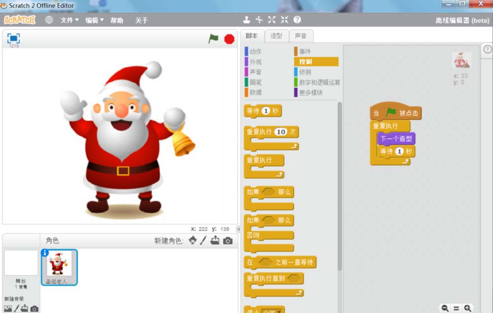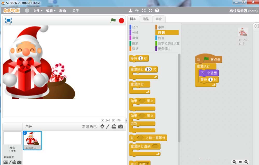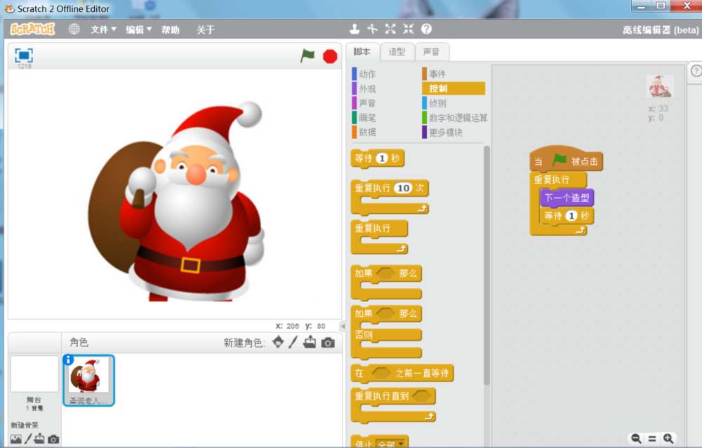 scratch想要制作圣诞老人的动画效果,该怎么制作这个效果呢?下面我们就来看看详细的教程。