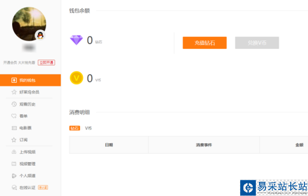2、点击后便可进入到腾讯视频 - 我的钱包页面
