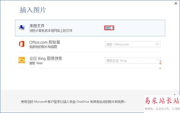 3、此刻会弹出一个“插入图片”的对话框,我们单击“来自文件”右侧的“浏览”按钮。
