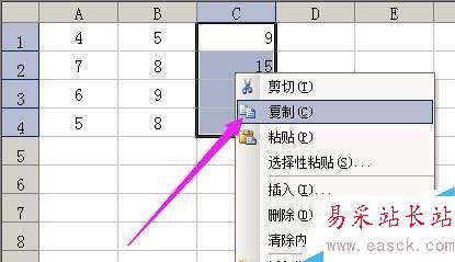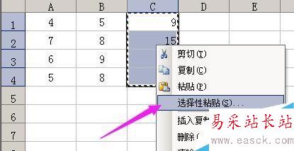点复制后,再次点鼠标右键,弹出的菜单中点”选择性粘贴“;