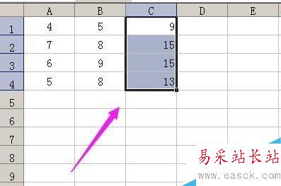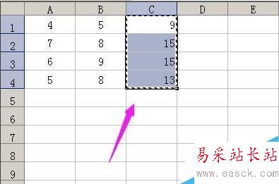 选中C1至C4单元格,如图所示,C1至C4单元格形成选区。