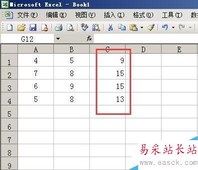 C1单元格即显出结果,编辑栏没有函数公式显示,只显示数值。
