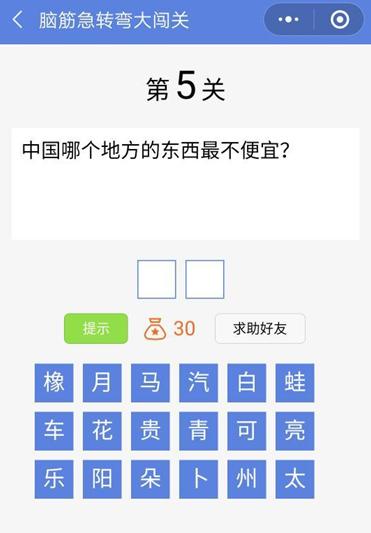微信脑筋急转弯大闯关第5关【中国哪个地方的东西最不便宜】答案攻略 ... [更多详细]