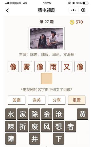 微信猜电视剧第27题答案_微信小程序猜电视剧第27关攻略 ... [更多详细]