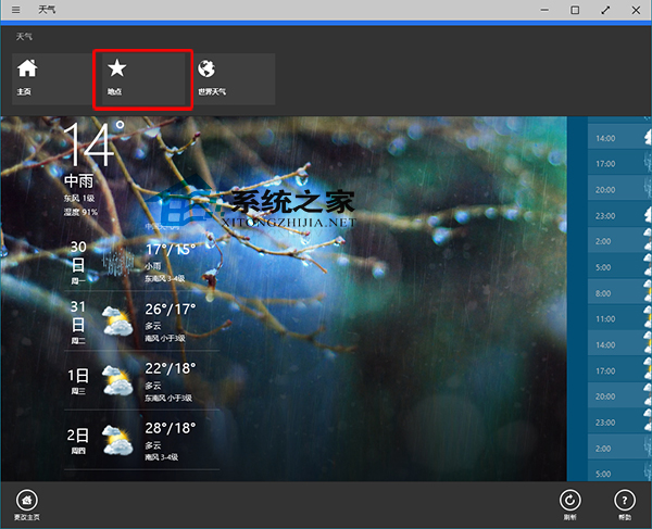Win10天气应用主页显示天气的城市如何更改 ... [更多详细]