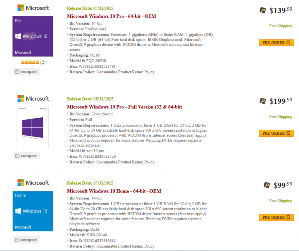 Windows 10正式版在美国新蛋提前开卖 ... [更多详细]