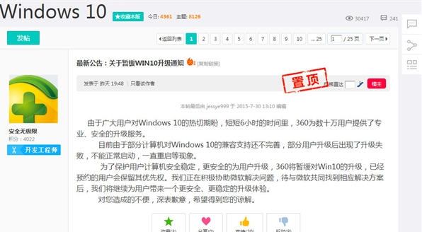360暂缓Win10升级通知 ... [更多详细]