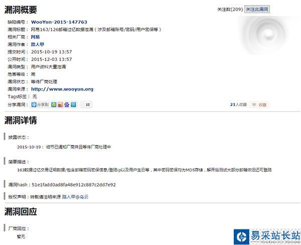乌云曝网易163/126邮箱过亿数据泄漏 包括iPhone用户的Apple ID ... [更多详细]