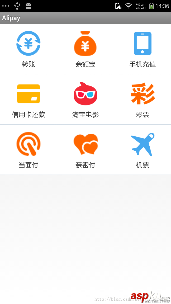 Android开发之实现GridView支付宝九宫格 ... [更多详细]