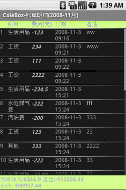 Android 个人理财工具五:显示账单明细 上 ... [更多详细]