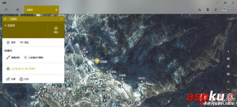 如果输入正确、网络正常,地图将定位到搜索的景点,并为这个景点创建一个标签。在左上角的小窗口上,点击“保存”按钮。