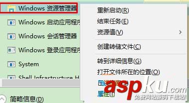 2、找到“Windows 资源管理器”单击右键,点击【重新启动】即可。