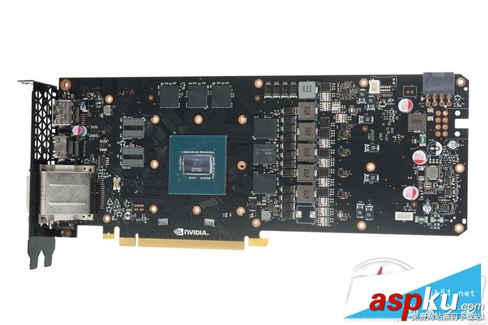 PCB拆卸后特写,可以看到电路板本身还是比较空的,这说明对于GTX 1060而言更小巧的尺寸并不困难。大家可以看到5+1项供电的规模,在GPU核心周围还有一层护板。