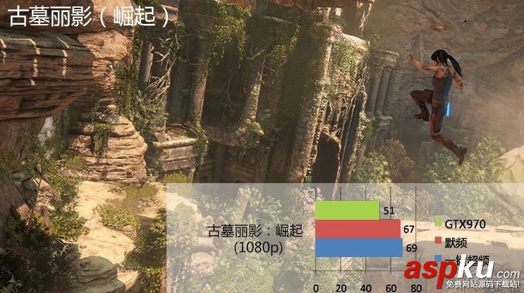 其中提供了《古墓丽影10》使用GTX 970在1080P下的基准成绩是51,1060默频下是67,提升31%,超频下69提升35%。