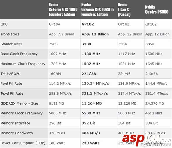 从纸面规格来看,1080 Ti相较TITAN X之所以能取得性能提升一是面向游戏向的优化,二是超频版新G5X显存的使用,针脚带宽提升了10%,同时核心主频、纹理填充率也有加强。