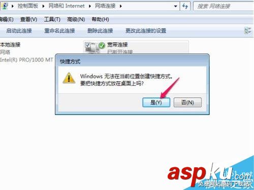 接着会弹出”windows无法在当前位置创建快捷方式.要把快捷方式放在桌面上吗”,点击”是”选项