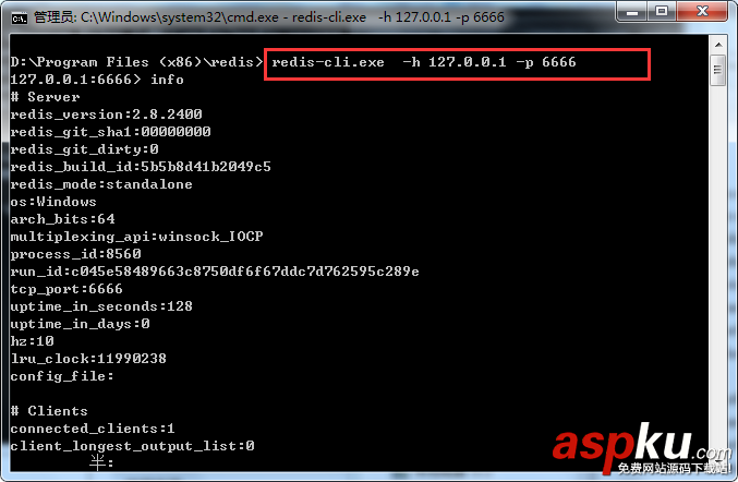连接指令:redis-cli.exe -h 127.0.0.1 -p 6666