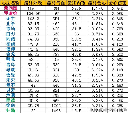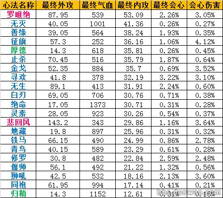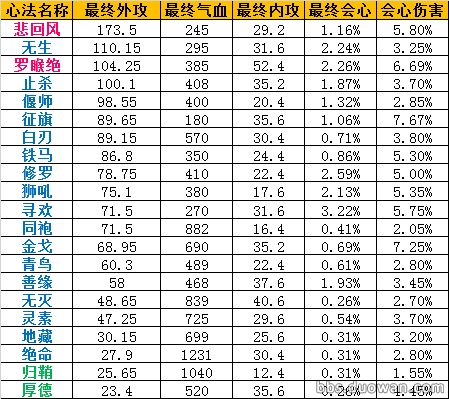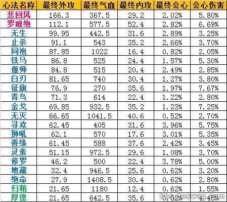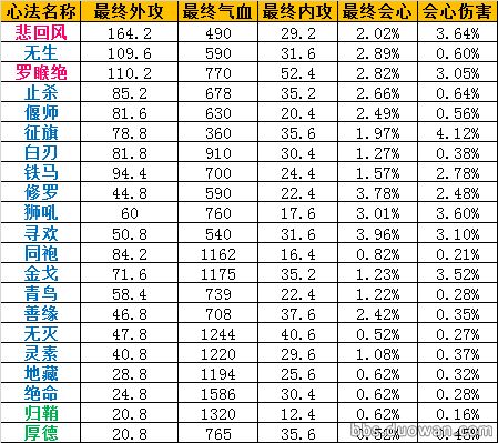 天涯明月刀各职业全心法数据 天刀心法数据攻略