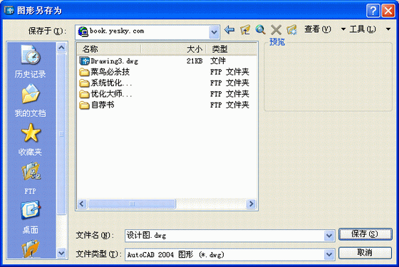 保存图形文件第三种方法为:选择“文件”菜单中的“保存”命令,操作方法与其它Windows应用软件相同,这里就不再介绍了。