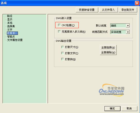 方法一:取消CRC检查。执行【系统设置】命令后,在弹出的对话框左侧参数列表中选择【数据接口】,将【CRC检查】的复选框里的选择去掉,如下图。