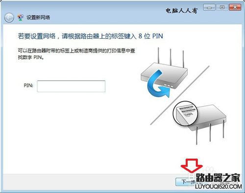 此时会弹出填写路由器PIN的设置框,将路由器反过来就有8位数的PIN数字。