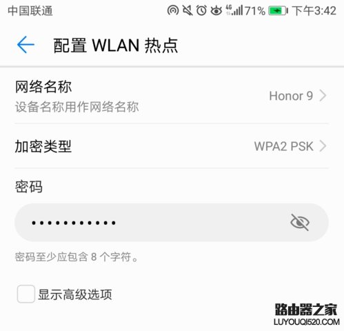 接下来我们输入我们的WIFI密码8位数;之后别人需要通过你这个密码才能连接到你手机的移动网络。
