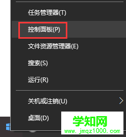 1、在桌面右下角的win图标上单击右键,选择控制面板。