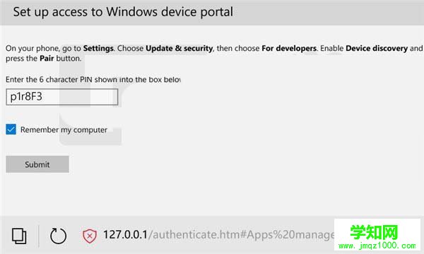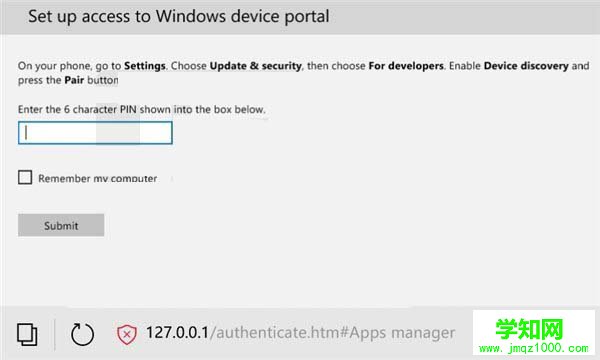 4、将上面的代码输入到浏览器的方框中,点击Submit即可进入任务管理器。(建议勾选Remember my computer,这样下次可以不再次输入代码)。