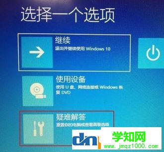 4、重启之后进入选项的选择界面,在选项中选择【疑难解答】,如图所示: