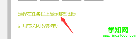 4、点击打开网络以后,我们会看到有一个选择在任务栏上显示哪些图标的这个选项,我们点击打开进入到里面。