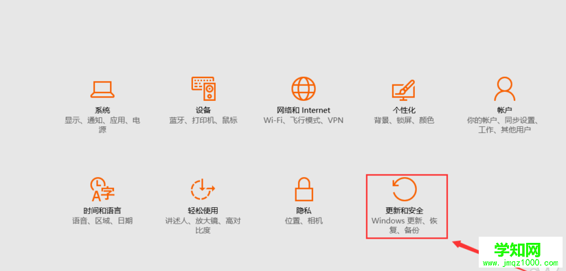 2.在设置页面中找到并点击 更新与安全 按钮,进入下一步。