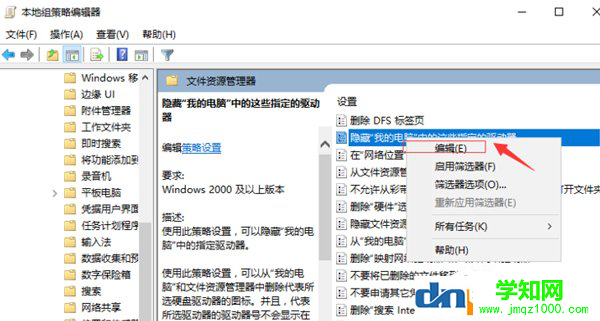 2、输入gpedit.msc,确定;  3、在本地计算机策略,用户配置,管理模板,Windows组件,Windows资源管理器,找到“隐藏我的电脑中的这些指定的驱动器”;  4、右键,选择编辑;