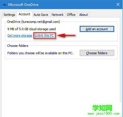 2、在“Account(账户)”选项卡中单击“Unlink this PC(取消链接此电脑)”;