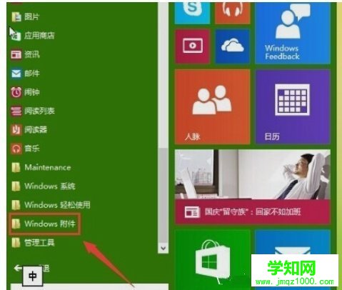 在所有应用中找到【WINDOWS 附件】点击一下它打开这个文件夹。