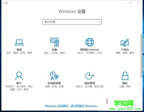 2、打开如图所示的界面,打开windows设置界面。