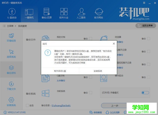 5、然后备份爱尔轩电脑C盘重要资料,硬件驱动,左下方有备份目录,可以从此路径寻找。点击下一步后会出现询问窗口,点击安装系统
