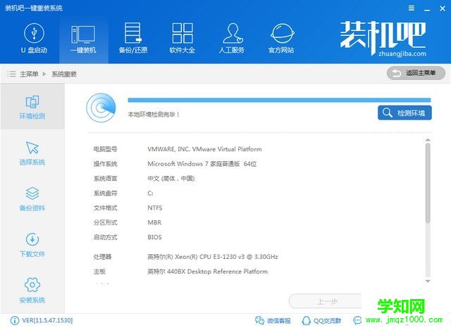 2、装机吧不仅支持一键装机,U盘启动,遇到问题可以咨询人工客服哦。单击一键装机界面下的系统重装
