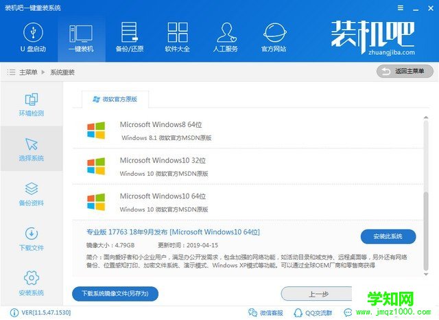 4、选择需要安装的win10系统,装机吧支持微软官方win10专业版系统哦,点击安装此系统