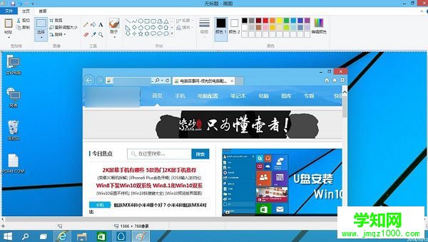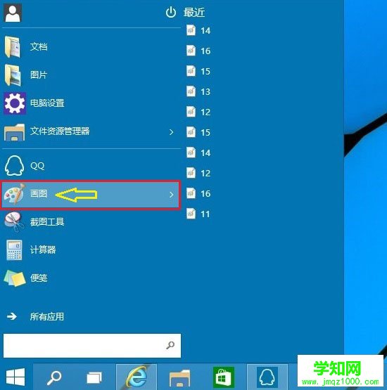 例如:笔者在Win10桌面中打开了一个小窗口浏览器,然后打开WWW.JB51.NET脚本之家网站,此次我要对整个屏幕进行截图,此时只要按一下键盘中的【Prtsc】键,然后立即打开开始菜单中的“画图”工具,如下图所示: