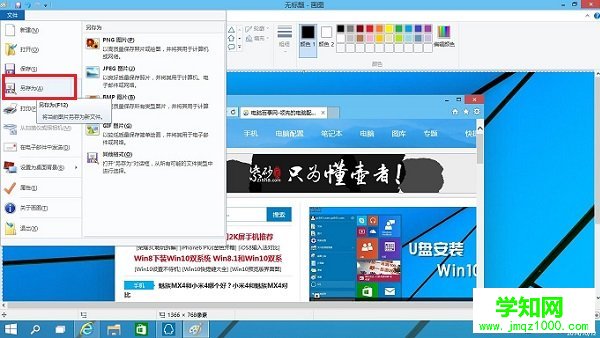 打开Win10画图工具后,我们再按键盘中的:Ctrl + V(粘贴)快捷键,就可以把我们刚才快捷键截图的图片,粘贴进来。如果觉得图片比较大的话,还可以使用画图工具修改,之后再点击左上角“文件”菜单中的保存或则另存为即可,如下图所示。