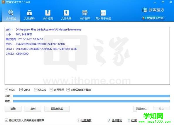 如果想快速校验多个值,可以使用软媒魔方(点击下载)的文件大师,只要把文件拖入程序窗口即可。