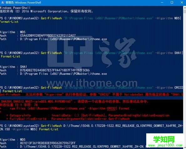 提示3:参数Algorithm无法在同一命令中被指定多次,一个命令只能计算一个校验值。