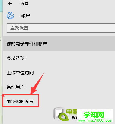 4、左侧找到‘同步设置’,点击该选项关闭。