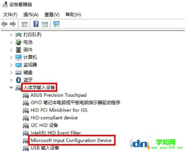2、找到位于人体学输入设备下的“Microsoft Input Configuration Device”。