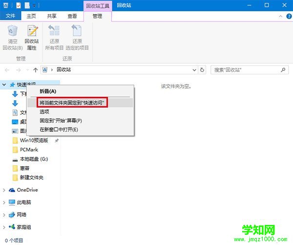 Win10的“快速访问”功能可以为用户提供近期常用的位置,免去用户搜寻的麻烦,点击之后可以直接进入。在Windows10文件资源管理器左边导航栏中,没有了回收站的位置,因此用户如果想使用这种方式查看回收站并不是很方便。因此有些用户就想到把回收站固定到“快速访问”。不过“回收站”这个文件夹比较特殊,系统默认并没有提供“固定到快速访问”的选项,而其他文件夹都有这个待遇。