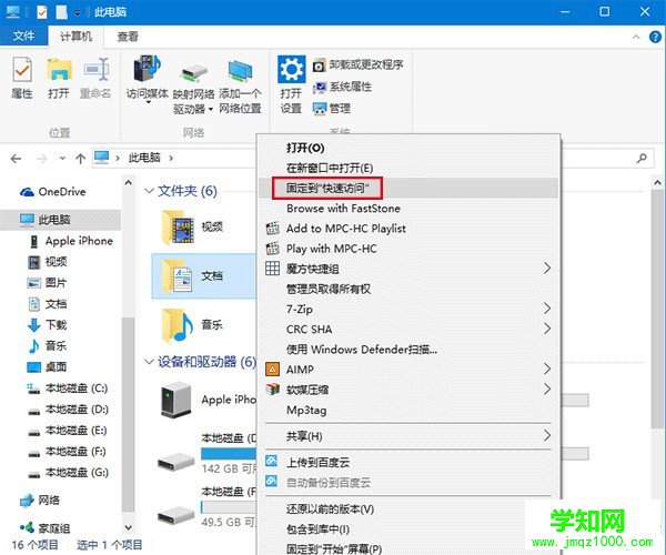 ▲在普通文件夹和位置图标上点击右键,会出现“固定到‘快速访问’”