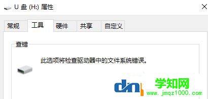 2、在属性窗口点击【工具】选卡,点击差错下方的【检查】按钮;