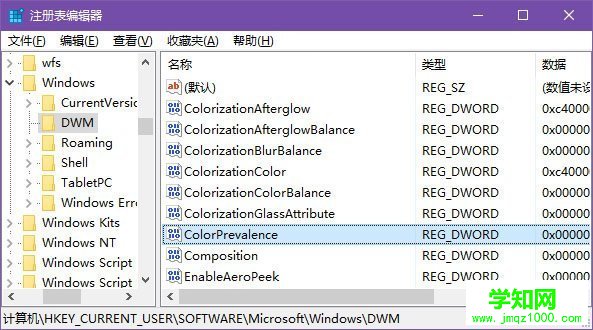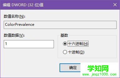 4、在右侧找到ColorPrevalence,双击将其值修改为1即可。