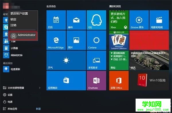3、之后点击开始菜单中的帐户头像,就可以选择Administrator帐户了。